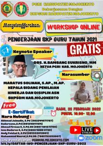 GRATIS Kegiatan workshop online pengerjaan SKP guru tahun 2021 terselenggara atas kerjasama PGRI Kab. Mojokerto dan BKPSDM Kab. Mojokerto