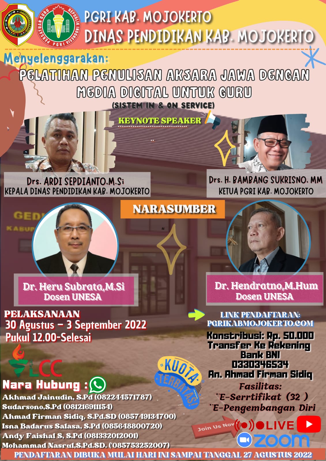30 Agustus – 3 September 2022 Pukul 12.00 – Selesai Secara Online